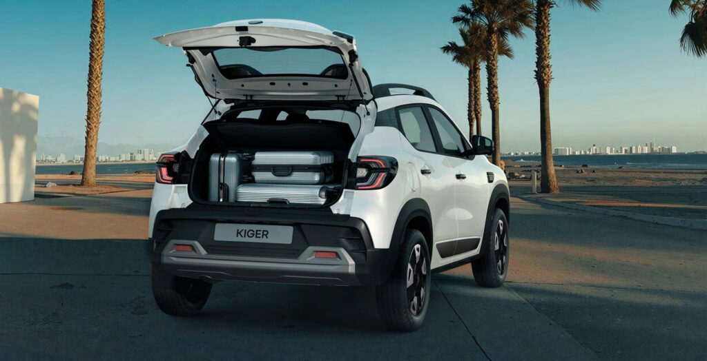 Inside, the Kiger combines smart technology with exceptional roominess. It features an intuitive 8-inch central touchscreen with effortless smartphone replication via Apple CarPlay® and Android Auto™. The cabin is designed for maximum comfort, offering best-in-class boot space of 405 litres, 29 litres of smart cabin storage, and generous rear knee room, ensuring every passenger enjoys the journey.